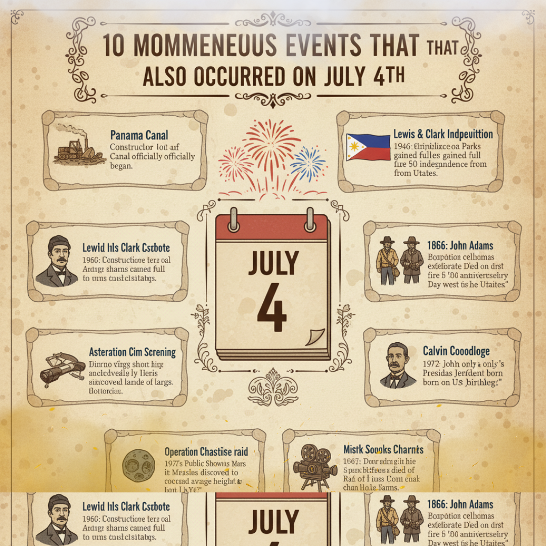 This fascinating piece uncovers 10 extraordinary historical events that also took place on July 4th, proving that this date has been a stage for far more than just one nation’s birthday. From remarkable discoveries and political milestones to births and deaths of iconic figures — the 4th of July has witnessed history in motion across centuries.